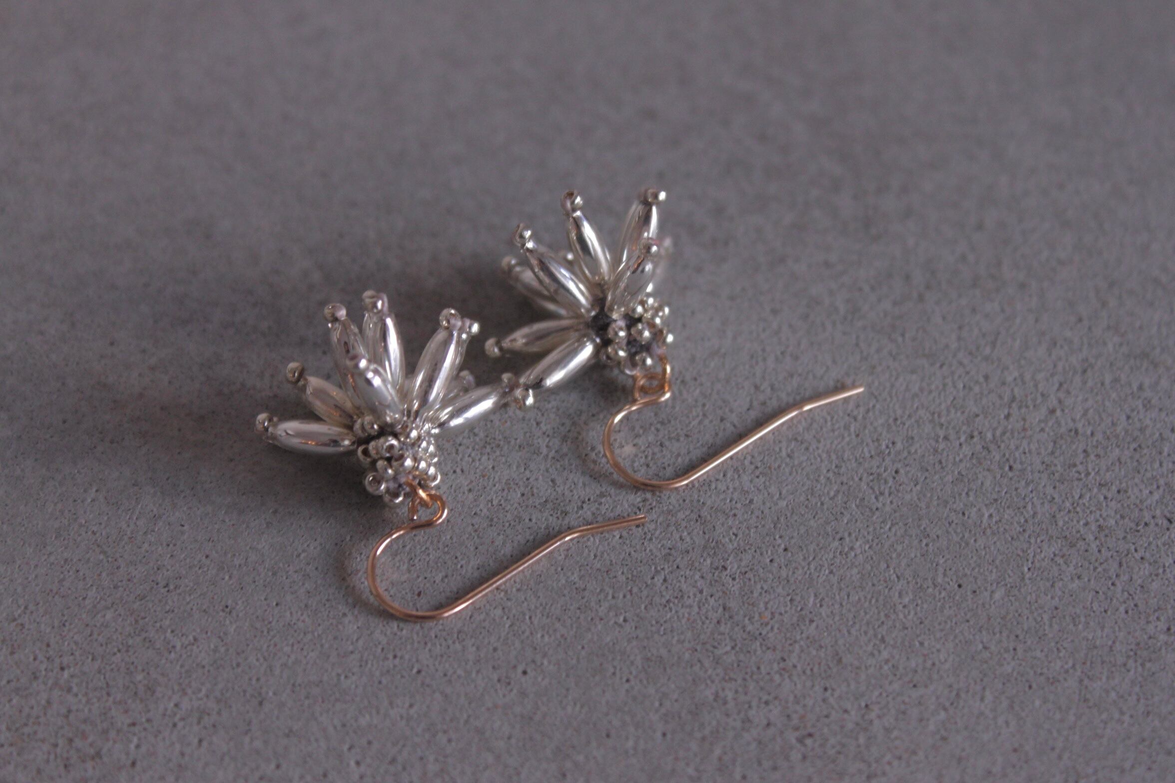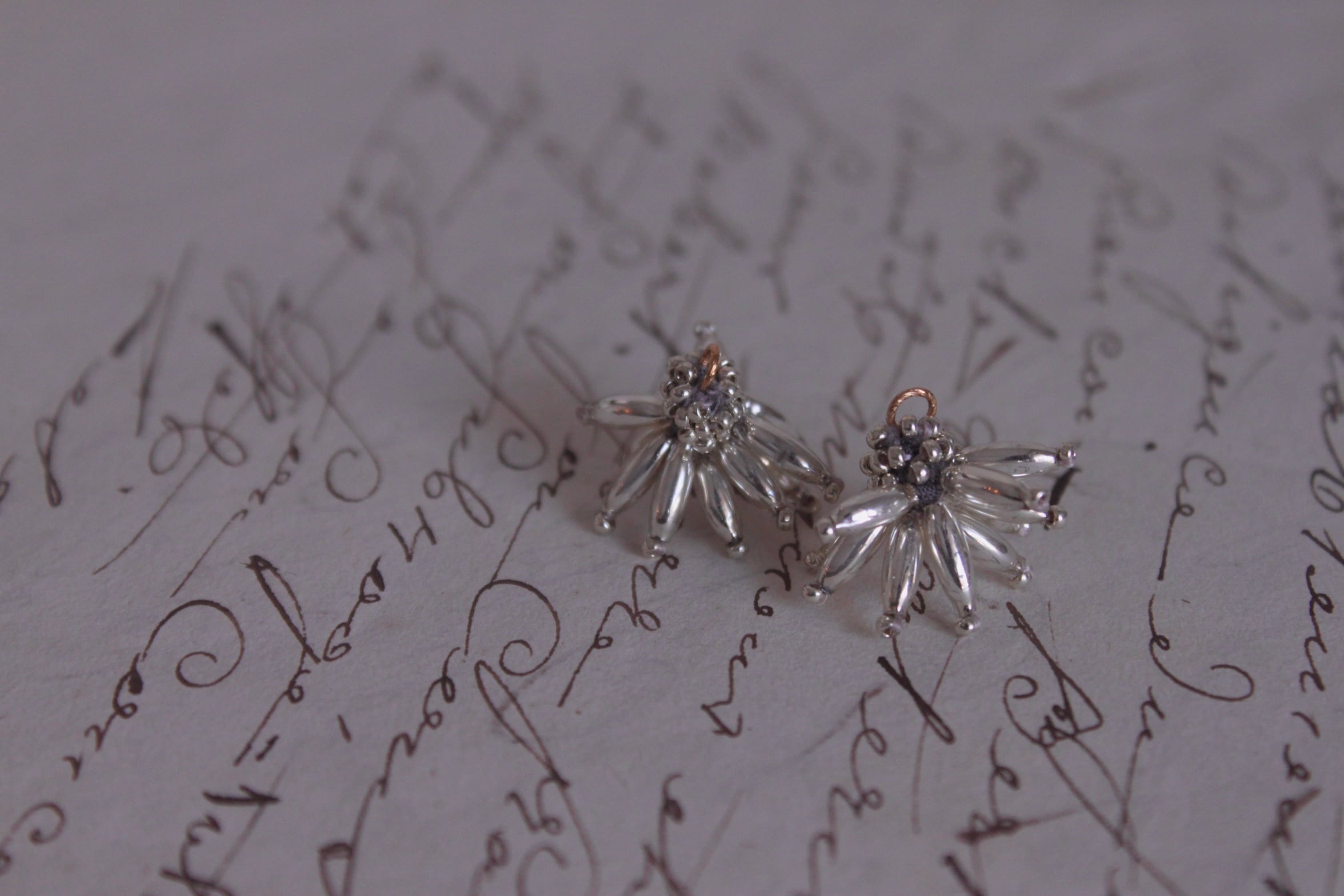 フランスヴィンテージのスフレビーズと、極小ビーズを使用した耳飾り。