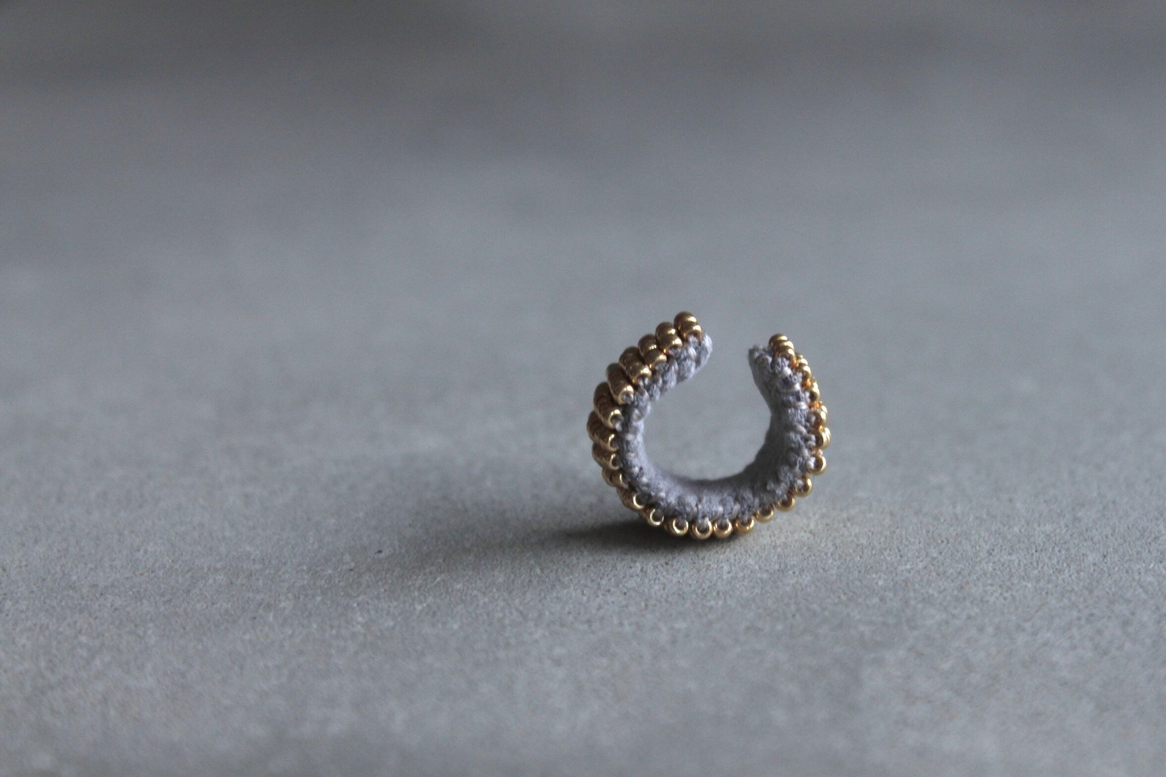 小さなビーズをぎゅっと寄せ合わせたイヤーカフです。