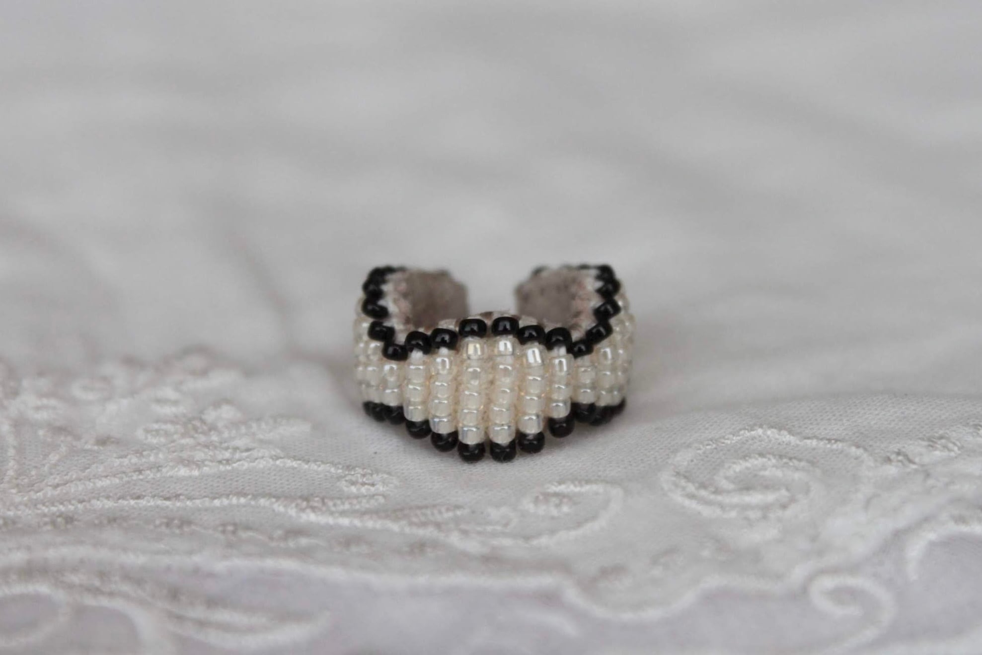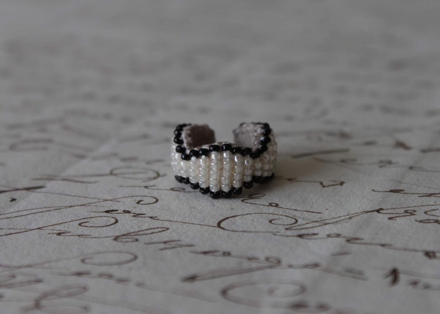 小さなビーズをぎゅっと寄せ合わせたイヤーカフ。こちらは波打つような曲線を取り入れたデザインとなります。
